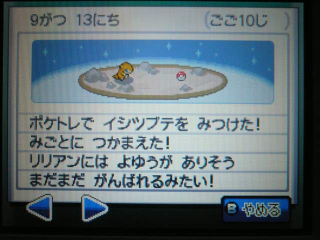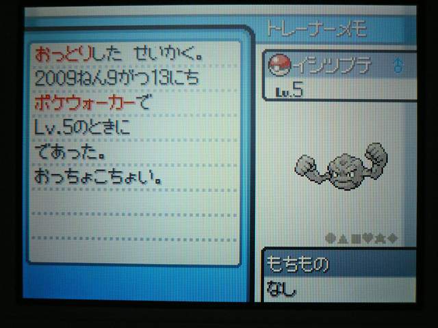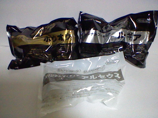 ポケモンのブームは去ったとはいえ、人気は衰えてはいないようですね。 店には 行列が出来ていました。 ホウオウとルギアが まぶしいぜー! そういえば映画では ルギアがフライングで主役になれたのに、 ホウオウだけは まだ一度も映画や番外編の主役を獲得してないんですよねー。 ていうか 出たのは第1話の最後や映画の予告編などに チラッと出ただけ。 今度こそ主役獲得なるか? ホウオウ。 予約特典のフィギュアもゲット! 2本同時予約したので アルセウス付き。 ていうか いずれはコイツらも連れて歩けるのか? アルセウスなんて 大地の恵みを司る偉大なポケモンなんだぜー。 最大のポケモンであるホエルオーは どうなるんだ? グラードンを連れて歩いても、床が耐えられるのか? これがポケウォーカー。 金・銀当時で言う、ポケットピカチュウカラーと言ったところか。 歩数計だけど 振ってもカチカチと音がしない。 モーションセンサーか? これが裏面。 背面カバー自体がベルトフック付きのものと取り替える仕組み。 真ん中のボタンを押すと起動。 もう一度押すと 通信待機状態に。 でも今は ゲームを起動していないので・・・ スネちゃいました。 DSカードも黒い! GB版の頃も 違う色のカートリッジだったけど、今回もそうだとは。 ちなみに色ちがいカートリッジで印象的だったのが、 スーパードンキーコングGBのバナナ色のカートリッジ。 初めてゆえに 印象的でしたなぁ。 こんなこと書いてるあいだに さっさとやれと言った感じですね。 そろそろジョウト地方の冒険に出発しますか。