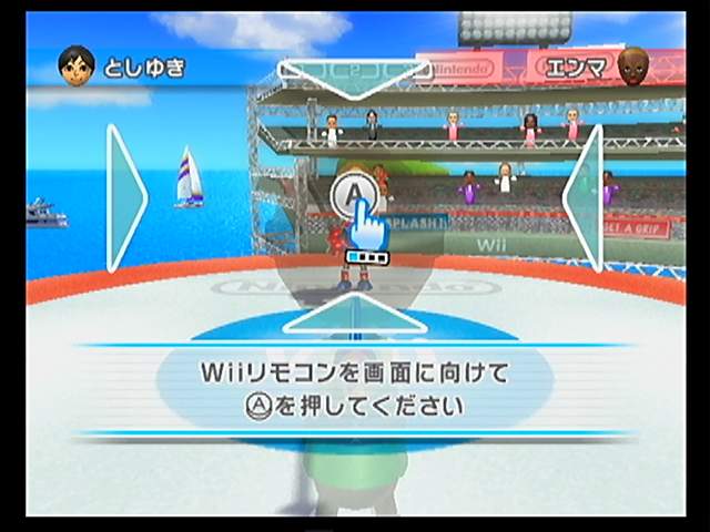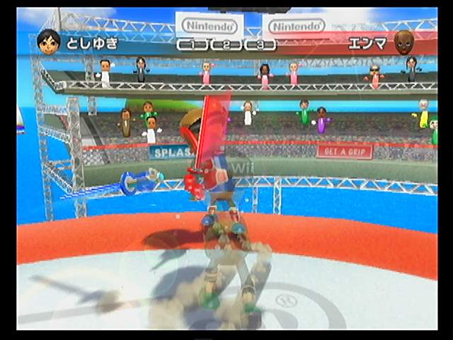 Wiiモーションプラスが付属して4080円(ジョーシンにて)。 なかなかいい価格です。 専用ジャケットと1体。ジャケットの中には 取り付け・取り外しガイドが。 背面にはロックレバーが。 これを動かせば ツメを動かすボタンが固定され、 両手でつかむのも安心。 もちろん、ジャケットから本体を取り外すことは可能。 ガイドには赤い文字で 外さないようにと注意書きがされているにも関わらず、 早速外しちゃいました。いや~ん。 まぁ、使用中は外さないように ということですけどね。 ジャケット外したまま取り付けてみる。 このままでも しっかり付いているけど、 遊ぶ場合には ちゃんとジャケットを付けましょう。 プラグはグラつくけど、これは 接続不良を防ぐための処置なので、 決して故障だと誤解しないように。 仕様上でも本体とジャケット2つで1つの扱い。 型番も2つ合わせてRVL-026なんですね。 さて、正規にそうちゃーく! 少し ながーくなりました。重さも少し増して ズッシリとした感じがいいです。 Wiiスポーツリゾートの説明書には、冊子のほか、ポスター状のものまで付属。 これを全部熟読してから遊んでね。ということではなく、 冊子にはゲームモードなどの説明。 ポスター状のものには、マップや各ゲームの操作方法が パンフレットみたいに書かれています。 説明書というより まるで観光用のパンフレットに近い。 実際チャンバラを遊んでみました。 Wiiリモコンを振って 剣を振るのは当然ですが、驚いたのが 操作がそのまま動いたとおりに伝わるんです! 今までは、振った方向だけを認識していただけだけど、 Wiiリモコンを動かした通りの動作が そのまま反映され、 本当に剣を持っているような感覚。 なので、つい本気になって振ってしまいました。そして 腕が疲れました。 むしろ疲れることが出来るほど振ったのは久しぶりで、 本気と書いてマジと言うほどエキサイティングで、思っていた以上に面白かった。 最初は デタラメに振っているだけでも勝てるけど、ゲームが進むにつれて、 防御もしなければ 勝つのは難しくなってくる。 防御の方法は、Bボタンを押しっぱなし状態で、 相手の剣と交差するように合わせて Wiiリモコンを構える。この操作もじつに本格的。 試合開始前に このように画面に向かってAを押すように指示。 これは Wiiリモコンの向きを再確認かと思われる。 試合開始のたびに 毎回出るけど、とくにテンポに支障はなし。 試合前の準備とでも思えば・・・ とりあえずチャンバラだけで遊んだけれど、 本当に剣を振っているようで 楽しかった。 正直初心者用と思い あまり期待はしていなかったけど、予想外に面白い。 体感ゲームとしても楽しいけれど、 ゲームルールは単純でも、ここまで楽しいものが出来るんだなと改めて思った。