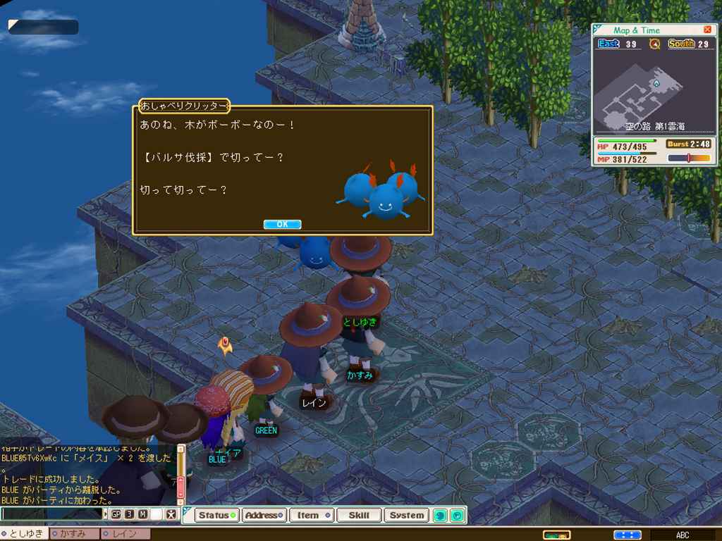 景色を楽しむのもいいが、パーティの状況も しっかり把握しよう!