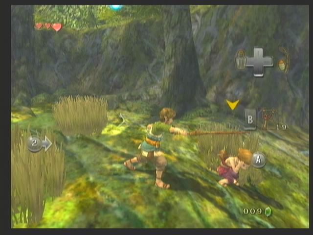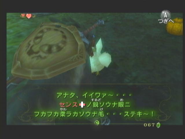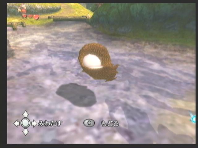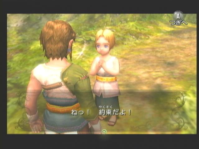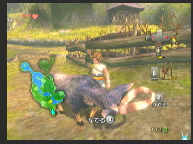 現在やっています。 人んちのツボやカボチャを ぶっ壊してたり・・・ 家を出たら復活していますが、どういう仕組み? と、詮索するのは やめましょう。 サルから奪い返したカゴを 浮かべてみました。 プカプカと気持ちよく浮かびます。 じつは 壊したカンバンが持てるようになったのも、 このように浮かぶ仕組みを作ったけど カンバンが川から遠い、 ならば持っていけるようにしよう という事で カンバンが持てるようになったそうです。 こういう意味のないところにも力を入れてるのって好きです。 ネコのために魚を釣ったとたん 奪われました。 ネコまっしぐらです。これでご機嫌なおるといいな。 このネコの名前、リンクと同じ名前(変更した場合はその名前)なんです。 勝手に人の名前使うな~~ 暴走して投げ飛ばされたヤギ。 とぼとぼと帰っていく姿に 哀愁がただよいます。 なでて なだめてあげましょう。 突いて 急いで帰らせることもできます。 妙にかわいいコリン君。 この子ホントに男の子?? リンクの一振りも かわす子供たち。 ・・・やるな。 トワイライトに踏み入れて ワンちゃん・・・ もとい獣になってしまいました。その変身の様子が壮絶です。 ミドナにクサリを切ってもらったものの、中途半端に残してあります。 おかげで走るときに ジャラジャラ音を立てていますが・・・ このように 操作方法やヒントを 会話に織り交ぜているのが いいですね。 用語を並べて説明するよりも わかりやすいですし、 会話として成り立っていながらも、 その会話の中に用語が強引に混ざっているというギャップも面白いところです。