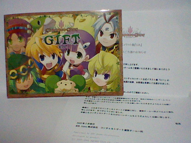 なんとか新ハードディスクにOSごとコピーに成功しました。 コピーが終了した直後では なぜか前回と同じ容量の183GBと表示されていましたが、 コピー後に リカバリする事で ちゃんと300GB(弱)の容量になっていました。 ついでに メディアリーダーも購入。 3640円したけど、付属のデバイスでは 転送速度が遅く、 フロッピーディスクドライブも いずれ欲しいと思っていたので購入。 ムリヤリ取り付けたら こんなんなっちゃいました。 まぁ、使えればいいんです。 しかし、このままでは よく使うSDメモリーカードの出し入れが不便だったので・・・ ネジ1箇所分 前に突き出してみました。 出っ歯になってしまいましたが、まあいいや。 なななんと!! コンチェルトゲートのイラスト集プレゼントに 当選しました!! 勇者への道キャンペーンに参加していて、 応募資格を得たので、とりあえず入力しとくかという気で 応募してみたのですが・・・ まさか それが見事当選になるなんて・・・ しばらく震えが止まりませんでした。 本には戸部さんのコメントもあり、 そのイラストが 公式サイトに掲載されてある時期のプレイを 思い出しながら読みました。 これは宝物として大切に保管しますよ。 そういえば あと3日後にはバリューコース開放も終わり、 運営会社も変わって、課金システムの方式も変わるそうですね。 拡張された銀行に預けていた物も 整理せんとなぁ・・・