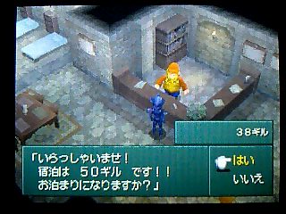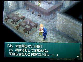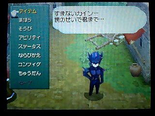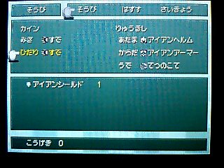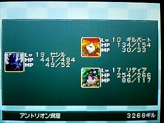 現在ファイナルファンタジー4DSにハマっております。 多少システムに変更はあれど、内容は ほぼそのまま。 しかし、難易度はかなり高いです。 酒場にて。今回の主人公セシルは暗黒騎士。 主人公なのに まるで悪役です。 酒場のご主人も 驚きのあまり、お代はけっこうと。 でも宿賃は しっかり取ります。 だいじょうぶですよ。何もしませんから。 だから あんまり怯えないでください。 税金の取立てに来たわけでも ありませんから。 子供は純粋です。思ったことをズバッと言っちゃいます。 だいじょうぶです。じきに白くなって帰ってきますから。 メニューを出せば キャラクターの思いを見られるのもいいですね。 このネタまで しっかり再現。 昔ならドット絵キャラが 飛び跳ねたりするだけでしたが、 今回はカメラもアップになり、ポリゴンキャラが ちゃんと踊ってくれるんです。 ダンジョンでは マップを作りながら進みます。 宝箱の位置も表示されて便利。 こんなシステムがあれば 当然完成させたくなりますでしょう。 そして完成すれば ポーション5個などのアイテムがもらえるという、 景品付きの おいしいマッピングシステムでもあります。 場所が進むと ゼウスのいかりやエリクサー数個など、 景品も豪華になってきます。 え? カインさん左ききじゃなくなったの? どうも今回では きき手の概念は なくなったもよう。 ちょっと残念ではありますが・・・ それならまだいいのですが、ちょっと納得いかないのが、弓の持ち方。 後に仲間になるローザは 弓も使いますが、 その弓をローザは 右手で持っています。 普通なら弓は きき手に矢を、反きき手で弓を持つものなのですが・・・ スーファミ版でも、右手に弓を持たせると うまく攻撃できないという細かい設定もあったと思うのですが・・・ 後、セシルが弓を装備できなくなったという点。 かわりに「○○のぼう」という武器があり、 磁力の洞窟でも一応対応できるようになっていますが。 モーションの設定の問題なのだろうか、 そのあたりが ちょっと残念ですね。 ミストドラゴン戦。 アクティブタイムバトルの概念を勉強するための戦闘にもなっていますね。 後に加わるギルバート。 気の弱い性格は 相変わらずでしたが、 実は彼は 近作でめっちゃパワーアップされています。 攻撃力は ないに等しいのですが、特殊コマンドがスゴすぎる!! 「うたう」は失敗せず、個別に選択可能になってるわ、 「くすり」はなんと! ポーション以外の物も使えるようになっています。 当然フェニックスの尾も! 回数に限りはあるようですが。 他、テラの「おもいだす」の成功率もアップ! 仲間になってすぐ ブリザガなどを簡単に繰り出したり。 パロムポロム姉弟の「ふたりがけ」の効果も絶大に!! 今まで使い物にならなかった特殊コマンドが それはもう面白いほどに使いやすくなってしまいました!!! コマンドも設定可能で、好きな位置に好きなコマンドを持ってこれます。 例えば アイテムのポーションを アイテムコマンドを開かずに使えたり、 ローザの「ねらう」コマンドを いちばん上にして 「たたかう」と同じように扱えたり・・・ オートバトル機能も備わっていて、その時の行動を ひとつだけ設定可能。 画像のように「アイスロッド」を設定して、 毎回それを使ってもらう事もでき、MPの節約にもあります。 攻撃魔法を設定すれば 全体がけで使ってくれます。 他には ローザの「いのる」、ヤンの「けり」を設定すると便利。 レベル上げも ぐっとラクになります。 今回もDS版3同様、マトリックス製作のもよう。 しかし今回は 名場面はボイス付きのポリゴンムービーが流れるという豪華仕様。 タッチスクリーンを使ったミニゲームもあったりと、 何かと盛りだくさんになっています。 ただ、難易度は高く、多少の不満はあれど、いいゲームです。