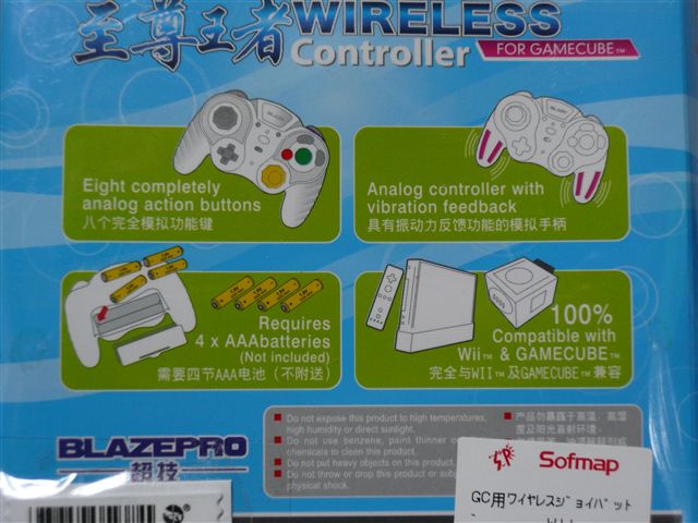 どうやら日本国外向けの商品のようです。 左は有線コントローラ、右は無線コントローラです。 国外向けでも、日本向けのゲームキューブやWiiでも使えるようです。 有線コントローラ。形も大きさも 純正品そっくり。 1380円で売っていました。 グリップが若干大きめだけど、けっこう しっくり来てて持ちやすく、 操作感は純正品と ほど変わりなし。なかなかの良品です。 パッケージの文字を見ると アメリカ向けでしょうか。 「DUAL SHOCK」の名前が なにかひっかかりますが。 中央には3つのボタンがありますが、 左にあるのが連射ボタン。 連射速度は ちょっと遅めだけど、なかなか使えます。 右にあるのはスローボタン。 当然ご存知とは思いますが、パチモノファミコン等についてあるスロー機能は 単にSTARTボタンを常時連打状態にして、 ポーズの連続で ゲーム進行を遅くするだけです。 モチのロンと言うべきか、やはりと言うべきか、 このコントローラも それと同じなんです。 某ゲームのVFXパワーを 他のゲームにも使えるわけではありません。 ぶっちゃけ言うと この機能いりません。 最近のゲームは STARTボタンの用途はメニュー画面を開く物となっているので、 余計な誤操作を招いてしまう恐れもあるかも。 間違って操作しないように、ニッパーでプッツンしちゃおうかなぁ なんて考えたりして。 まぁ、バーチャルコンソールのファミコンソフトでなら使えるかな。 振動機能は重めで、少し弱い気がします。 無線コントローラ。グリップは外側に広がり気味だけど、 操作感にさほど違和感なし。なかなか持ちやすい。 2580円。無線にしては わりと安価。 これにも当然のごとく連射機能がついています。 連射速度は上記の物よりも速めです。 任天堂からも「ウェーブバード」という無線コントローラを出していますが、 大きな違いは振動機能がある事も そのひとつでしょう。 電池は単4を4本使用します。 振動機能もあるので、なるべくアルカリを使ったほうがいいかも。 コントローラの下にもスイッチがあり、そこで振動機能をオフにできます。 電池の節約になると言うわけですね。 レシーバーです。ゲームキューブの接続も考えられた形状にもなっています。 しかしこれ、チャンネル設定がありません。 そうつまり、これを複数使ったら、全てのコントローラポートの操作が 全く同じ操作になりそうです。 残念ながら これを複数使っての対戦には使えそうにありません。 振動は軽く、強めになっています。 使い勝手は いいのですが、 ボタンを押したり、スティックをはじいた時の音のカラッポ感がなんとも・・・ すき間から見えちゃったりします。はずかしぃ! しかし、少々問題が生じました。 有線の方をWiiで試してみようと思ったら、 プラグの中の金具が ひん曲がってしまったようです。 おかげでWiiに接続したら不具合を検知してかWiiが強制終了するハメに。 そんな機能もあったんだなぁ、Wiiって。 やっぱりこの手の製品かなぁとは思ってしまいましたが、 使い勝手はよかったので、これぐらいの故障なら なんとか修理してみたいと思っています。 大阪に珍しく雪が降りました。かなり つもってました。 しかし大阪の雪は すぐ溶けちゃうんですよね・・・ 青森とちがって グチョグチョになりやすいし、 路面も雪が固まらず、水びたし状態です。 こけたら えらい事になっちゃいますね。 ホントこんな状態なんですよ。 それでも溶けていない場所は 一面真っ白で、 きれいなものです。 外では子供たちが遊んでいたようで、 けっこう大きな雪だるまが出来ていました。 大人の方も 手伝っていたようですね。 大阪では1年に1回あるかどうかも わからない雪、 いい1日に なった事でしょうね。