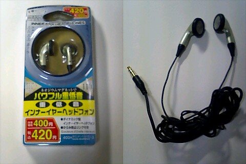 ダイソーで420円(税込)の 耳に入れるタイプのヘッドホンが売られていた。