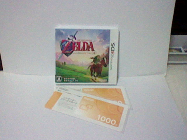 やはり買ってしまいましたよ。「時のオカリナ3DS」。 ダウンロードソフトも 何か欲しいと思い、プリペイドカードも購入。 しかし カードのほうは これしかなかったもよう。 かなり売れてるのかな。 今作はリメイクなんですが、過剰な追加要素などはなく、 操作性やBGMや効果音なども 当時の雰囲気を ほぼそのまま再現されています。 グラフィックが強化されていながらも その雰囲気を殺さずに しっかりと守っているのが素晴らしい。 しかし、本当に 当時の雰囲気や操作性も ほとんどそのまま再現されていて、 ベタ移植ならぬ ベタリメイクと言うべきでしょうか。 だが、むやみに手を加えず、当時遊んだ人も今から遊ぶ人にも 楽しんでもらえるよう、愛が感じられます。 驚いたのが ジャイロセンサーを使った操作。 最初は難しいのかと 不安に感じていましたが、これが想像以上に便利。 わずかな動きも敏感に感知し、しかも その動きがしっかりと合っている。 主にパチンコや弓で狙いを定めるのに使うのだけど、 スライドパッドで いつも通りの操作で向きを変え、 ジャイロンセンサーで微調整を行うという使い方も可能。 また、慣れれば複数の標的に対して すばやく狙いを定める事もできる。 部屋の中を飛び交うキース(コウモリ)とかは これで撃ち落しています。 的当て屋では ジャイロセンサーのみで操作すると 素早く狙えるうえに 本当に的当てをやっているみたいなのでオススメ。 もちろんOFFにする事も可能なので、従来操作のみでやりたい人も安心。 でも、ぜひ使ってほしい機能だと思う。 宮本さんも 画面を傾けると3D表示が見づらくなるので、 ジャイロセンサーを使うときだけ 開き直って3DボリュームをOFFにすると仰っていますが、 これに関しては 例えば銃などの飛び道具で狙いを定めるとき、 片目を閉じて狙いを定める場合もあるので、これは それにも似ているんじゃないかとも。 ゲーム進行に応じて 3Dボリュームを調節するのも面白いんじゃないかな。 今作では 64DDでお蔵入りとなり、「風のタクト」の予約特典として配布された 「裏ゼルダ」も収録されていますが、今作では 左右を反転させています。 なので、視覚的にも多少の新鮮味を感じられ、なおかつダメージも倍なので、 新しい気持ちで 楽しめるんじゃないかと。 以前、実際に「風のタクト」の予約特典で遊んでいますが、 仕掛けも開き直った感があり、ジャブジャブ様の体内の壁に ウシがめり込んでいたり、 さらには そのウシの頭がパチンコで撃つスイッチになっていたり・・・ そんな無茶があったのが記憶にあります。 今は表は一通りクリアしていて 現在は裏をプレイ中。 過去は途中で止まっていたので、どんな仕掛けが待っているのか楽しみです。