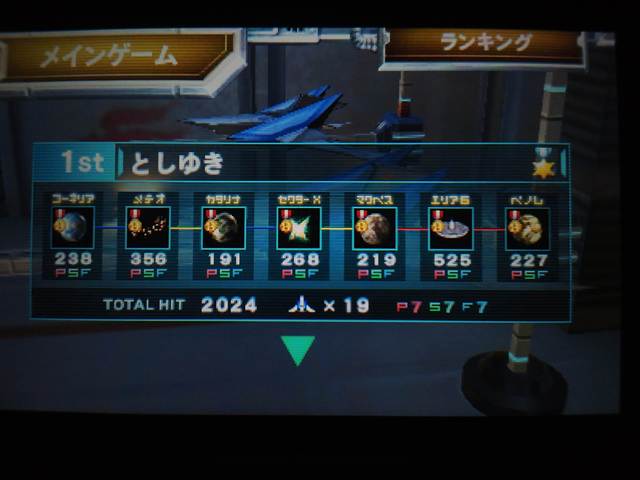 今回は「黒き英雄ゼクロム」のほうを観に行ってきました。 先週観に行った「白き英雄レシラム」とは 大まかな内容は同じですが、 登場するポケモンに違いをつけたり、双方で違う視点で見ていたりと、 違いを見つけるのも面白い。 先週買いそびれたパンフレットやグッズも買ってきました。 映画の記念メダルにストラップ。 ストラップは さすがに取り付けた物を傷つける恐れもあってか、 ストラップとして使うことに 躊躇してしまいそう。 しかし、金属なグッズは やはり重みがちがいます。 メダルの裏はビクティニが描かれています。 今回のパンフレットで面白いと思ったのは・・・ このページ。 付属のレンズを使うと・・・ ビクティニが浮かんで見えるという仕掛け。なかなか凝ってます。 今回 ちょっとお隣さんの声が気になったのですが、 館内で買ったポップコーンを持って席についたら、 「ポップコーン臭がする」と言い出したのです。 まるで食う気の失せる言い方をしてくれる。 何か言うにしても、もう少しいい言い方はなかったのか? やりました! 「スターフォックス64 3D」で、初の2000点突破! 64時代からも なしえなかった2000点突破を、 時代を越えて ようやく成功させました。 今までは セクターY方面で進めていたけど、進路を変更。 コーネリアでは 今までくぐっていなかったゲートがあり、逃していた敵がいたもよう。 ガルーダは破壊した後も、チャージ弾の爆風のみを残った下半身パーツに当てれば、 +1HITが稼げるので、それも狙ってみる。 メテオのワープゾーンでは,惜しみなくボムを使用、そして十分に回収。 カタリナでは たまにチャージ弾での誘爆を狙ってみるのもよし。 エリア6では アン・ブレラの破壊を優先しながら戦闘機にもチャージ弾などで応戦。 キラービー出現地帯は キラービーよりもアン・ブレラを優先したほうがよさそう。 後半の戦艦も、砲台をチャージ弾で破壊しつつ、ブリッジを攻撃し、本体の破壊も目指したい。 攻略サイトを見るなりして、今までも通っていたコーネリア、マクベス、エリア6は、 足りなかった部分を補うなどして、 他のステージも 自分なりに攻略法を模索して がんばりました。 コツとしては 出来る限り誘爆ボーナスを狙っていく事に意識するよりも、 出てきた敵を 確実に狙っていくつもりのほうがいいかもしれない。 逃したら 元も子もないわけですからね。 ただちょっと見直すだけでも エリア6で当たり前のように500点を取れるようになるなど、 確実に上達すると思います。 多少の妥協を許す程度の余裕があった方が いいかもしれないですね。 そしてオリジナルのロクヨン版にもチャレンジ。 Wiiのバーチャルコンソールのほうですが。 だんだん当たり前のように取れるようになってきました。 もう上級者の仲間入りですかね。 それから個人的にもシューティングゲームの最高峰と言えば、 「スターフォックス」しかないですね。 今 シューティングゲームと言えば、億単位にまでインフレしたスコア、 大量に出る弾幕を回避し続けるようなゲーム性、 弾幕や風景など、見た目を華やかにすればいいと思っているような雰囲気、 かなりマニアックな印象に思えますし、中でも個人的には 「弾幕はシューティングの逃げ道」に思っているぐらいです。 スターフォックスは 狙う、通過する、回避するという物の中の、 原点の面白さを追求しており、 戦闘機を操縦して敵と戦うという実感が持てるゲームだと思うのです。 そしてシューティングの中でも「スターフォックス」は異端な存在とは思いたくはないですね。 むしろ 純粋な進化がこうあるべきなんじゃないかと。 ニンテンドウ64やゲームキューブで発売された 「スター・ウォーズ ローグスコードロン」シリーズも スターフォックスと同様の楽しさが追求された いいゲームだと思いましたが、 今では そういうものが少なすぎるのではないかと。 もっと シューティングで表現できる楽しさを追求してもらいたいものです。