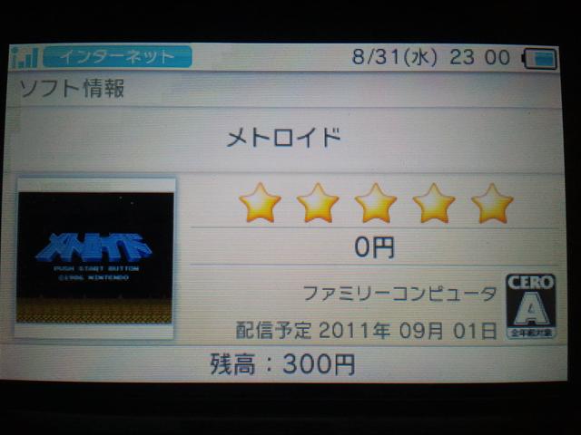 その前日の 午後11時にダウンロードできました。 オモロイド。いや、この頃は まだでしたっけ。 ソフトは既に購入したものとみなされ、購入履歴からダウンロードする仕組み。 1本ずつのダウンロードになり ちょっと手間だけど、 それもたった10回の辛抱。ぜいたく言わない。 未開封のソフト群。絶景ではないか。 とりあえず「リンクの冒険」を起動してみる。 う~ん、そのまんま。これが3DSで お手軽に遊べるなんて。 中断機能は もちろん搭載されていて、HOMEボタンで抜けると、 その時点の状況が保存されている点は Wiiのバーチャルコンソール同様。 ただ、GBのVCのように まるごと保存は不可能(製品になれば出来るようになるらしいが?)。 説明書も ずいぶんと簡易ではあるが、別に問題はない。 画面は引き伸ばされているようだが、 START押しっぱなしによる 引き伸ばし解除にも対応していない。 これらもまた正規版が配信されれば改訂されるだろうか。 そして、VCソフトと同様に、登録証も。 これを起動しておくと、アンバサダープログラムの情報を受信できるとのこと。 大半のソフトは 遊んだことのあるソフトではあるが、 個人的には ハードを変えて同じゲームで遊ぶのも味があるものだと思う。 ディスクシステムの読み込みも完璧に省かれているし、かなり快適に遊べる。 中でも「マリオオープンゴルフ」は 一切遊んだ事がないため、いい機会だし。 個人的には「マリオ3」が欲しかったが、これはまぁ、正規のVCが配信されたら購入しよう。 しかし、急な値下げとはいえ、 値下げで ここまでするという事も 今まであっただろうか。 3DS本体の売り上げが 芳しくはないゆえの値下げかもしれないが、 それでも赤字覚悟の決断でもあるそうだし、 ネット上で そのような指摘を身勝手に行われているというのも じつに見苦しい。 そういう自分たちが 売り上げを落とす要因の ひとカケラにもなり、 なにより、よいゲームが遊べる事よりも、 売れない事を喜ぶ事自体も おかしな話である。 普通、値下げ前に買った人に対する対応といえば とくになく、 それまでだったはずだが、それなのに その人たちを気にかけ、 それでも少しでも損したという気持ちをなくそうという気持ちに敬意を払えないのだろうか。 まぁ、こんな事をグチったところで ムダな事か。 ともかく、にぎやかになったHOME画面と、タダでくれた10本のソフトで楽しもうではないか。