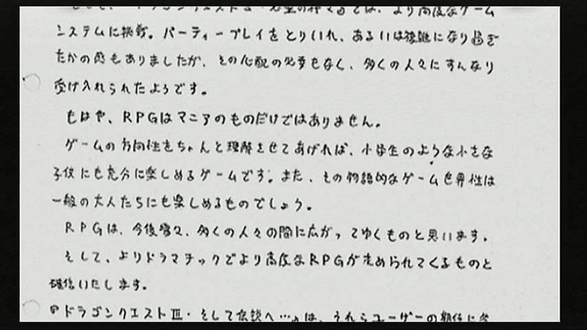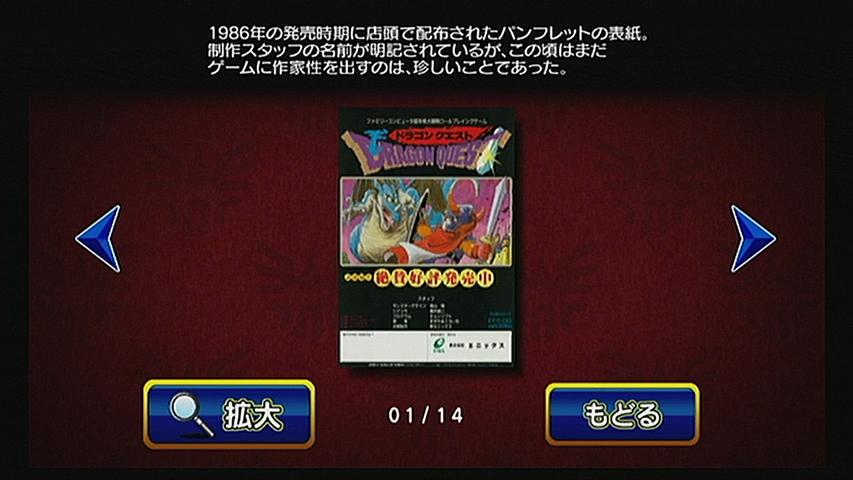 放送第1回を観て思ったのは、まず主要キャラたちの顔見せという印象だったこと。 イカ娘の本来の目的の再確認、イカ娘が苦手とする早苗、シンディー、千鶴の存在、 イカ娘を極端に怖がる渚、ライバル意識を持っている悟郎との掛け合い、親友である清美との関係など、 登場人物の関係が大まかに理解でき、新規で観る人に対する配慮が伺える回でもある。 それでも ギャグテイストは忘れてはおらず、テンポのいい展開は相変わらず楽しい。 ただ、千鶴の本当の恐ろしさについての説明がまだ不足しているが、そこは今後の展開に期待してみるといいかも。 そして、CMのすごさ。 ほとんどのCMが イカ娘に侵略されているという点。 ミニストップやナムコとの合同企画もあるなど、とても深夜番組とは思えないほどの企画がすごい。 もういっそ 昼間や夕方でも放送しちゃえばいいのに・・・ だけど本当に昼間にも放送できるぐらいだと思う。 ただ、1期の放送回数が少ないだけで、キツいネタもないし、純粋にギャグアニメとしての質もいい。 とくにギャグばかりでなく、ほのぼのとした やさしい展開もある。 深夜アニメと言えば たまに面白いものもあり、毎週欠かさず観ているものもあるけど、 最近では 本当に「一部の人」を露骨に狙ったかのようなものもあり、 そういったものには 抵抗を感じるときもある。 それに最近のキャラクターは、強い個性よりも、 素材として扱いやすい汎用性の高いキャラクターが多いような気もする。 だけど「イカ娘」では、強烈な個性を持ったキャラクター、 観る人を選ばないドタバタ劇で、なんの理屈もなしに楽しめる、まさに王道と言える展開。 先述の通り 放送回数が少ないことが唯一の難点であるが、それゆえに 作りこみも細かい。 3話構成で 1話ごとの内容も濃いので、短い時間の中でも充実した内容。 キャラクターも個性派ぞろいで、ギャグを放つ面においても死角なし。 中には イカ娘のほうがマトモに見えてくる濃いやつらも・・・ 先述の通り、最近では本当に いかにも狙ったような無難な仕上がりの作品も少なくなく、 そんな中で なんの制約にも捉われない独自の展開を見せる「イカ娘」の世界が とても輝いているように見えた。 「一部の人」をターゲットとした コスプレ衣装や抱き枕のようなマニアックな商品を出すよりも、 コンビニやアミューズメントとの共同企画も行うなど、商業展開にも視野を広めようという意思が感じられる。 確実に売れると思われるものを出すという 無難な考えばかりでなく、 売れるものにしていこうという意思を、大切にしてほしいと思う。 深夜に放送されている番組でありながら、自信を持ってオススメできる作品である。 遅ればせながら 「ドラゴンクエスト123」を買ったのだ。 いや、123作目じゃなくて、1~3が収録された カップリングソフトです。 ファミコンの原作版と、スーパーファミコンのリメイク版が入っていて、けっこうなボリューム。 買うのが遅かったので 初回特典は逃したけど、まぁいいや。 ファミコン版当時の攻略本、「ファミコン神拳奥義大全書」の復刻版も同梱。 攻略情報的には 中途半端さはあるけれども、 それが後は自分で考えろという伏線のようなものであったということも、 当時は気づくこともなく、情報の少なさに 困惑したものです。 しかし、一部の記事は収録されていなくとも、 今こうして読んでみると、イラストのタッチ、ブラウン管から直接撮影された写真と、 懐かしさも こみ上げてきます。 なかでも スタッフインタビューなどの記事が充実していて、読み応えバツグンです。 ゲームより先に、まず資料集を観てしまいました。これにかなり時間を取られたほどです。 当時の紙パッケージを ポリゴンで再現しているところがイカス。 当時の限られた容量を いかにやりくりしていたかというのが 伝わってきます。 とくにフラグ管理なんかは、ほんの数個ぐらいにしか使えなかったでしょうからね。 たとえば ローラ姫の救出過程を、ローラ姫を抱きかかえているかどうか、 「おうじょのあい」を所持しているかどうかで判定していたってあたりが・・・ 中でも個人的に気になった資料がこれ。 ファミコン版ドラクエ3の企画意図を記したものですが、 「もはや、RPGはマニアのものだけではありません。 ゲームの方向性をちゃんと理解させてあげれば、小学生のような小さな 子供にも充分に楽しめるゲームです。また、その物語的なゲーム世界性は 一般の大人たちにも楽しめるものでしょう。」 ドラゴンクエストは元々、マニアックであったRPGというジャンルを、 世間に知らしめる役割も担っていたゲームであるということも感じさせられます。 戦闘の戦略性がどうとか、アイテムや呪文をコンプリートできるかとか、 はてはステータスの1ポイント差までに こだわってプレイするとか、 そんな重箱の隅をつつくようなプレイをするようなゲームでもなく、 いまや ドラクエ