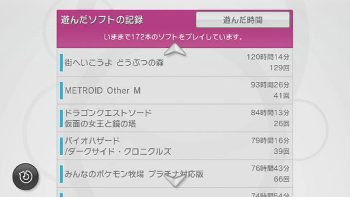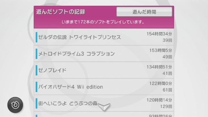 Wiiの『みんなのニンテンドーチャンネル』に 今まで遊んだソフトの総プレイ時間や回数が見られるので、 それを基に 話を進めていきたいと思います。 まず上位のものから・・・ 本体と同時購入した『ゼルダの伝説 トワイライトプリンセス』が1位。 意外と遊んでいたソフトだったんですね。 自由度の点では 従来のゼルダよりも減っていますが、 寄り道要素とかは豊富で かなり遊べますからね。 2位は『メトロイドプライム3 コラプション』。 今までコントローラで遊んでいたゲームを ヌンチャクスタイルで遊ぶようになって新鮮でした。 移動と攻撃を 同時に行えるようになり、 PCでマウスを使用したFPSに近くなったのが大きな進歩ですね。 しかし、FPSというジャンルが いまだマイナーなものであるのは ちょっと残念。 その操作システムを利用した 別ジャンルのゲームなら いくつかあるのですけどね。 3位は『ゼノブレイド』。これも けっこう長く遊んでいたんですね。 広大なフィールドを うろちょろしているだけでも楽しいし、クエストの数も膨大。瞬時に決まった場所へ移動できるシステムや、時間の変更が可能など、 少々強引な面もあるけど、ユーザーフレンドリーな要素が行き届いている点はさすが。 『バイオハザード4』も 繰り返し遊びました。 マーセナリーズで高得点をたたき出すのは無理でも、 2週目以降を 強力な武器で敵を圧倒していったり、 ムダにアイテムを集めていくのも、また楽しいです。 2ページ目では、『ドラゴンクエストソード』も けっこう遊んでいたんですね。 本編のドラクエとして比較すると ボリューム不足が指摘されているようですが、 これはあくまでも外伝のアクションゲームなんです。 スコアアタックなど、やりこみ要素は意外と充実しているんですよね。 操作に多少のクセはあれど、慣れれば ほとんど自由に剣を振るう事ができ、楽しい。 今までのドラクエのモンスターが 豊富な動きで襲いかかってくる姿は見もの。 いちばん下のほうを見てみると、なぜか所持していないはずのソフトが!? 『Wiiスポーツリゾート』はあるけど、『Wii Sports』なんて持っていませんよ。 これは一度 Wiiを修理に出しているから、きっと 動作確認用に使用したソフトなのでしょう。 しかし いちばん気になったのは、『スペースインベーダーズ』です。 かの歴史的名作も テストで使用されたディスクの使用時間よりも短いプレイ時間とは・・・ しかし、いくら名作と言えども そのほとんどは 当時他になかったからにすぎないというのも 大きいものです。 この項目を開いてみると、意外にも他シリーズやバーチャルコンソール内でも シリーズがあるようですけど、 やはり ここまで古すぎるものだと、古いソフトとしての ボリューム不足は否めないでしょうし、 いくらシリーズやリメイク等を出しても よほど興味のある人しか 手を出さないでしょうし、 いつまでも「名作」に すがっていては だめなのでしょうね。 タイトーも もっと他にキャラクター色の濃いシリーズを展開していけば よかったかもしれませんね。 しかし、さすがにこれは 短すぎるので、もう少し遊んでみようかなと思います。 ダウンロードしたのは アーケード版で、ちょうどアーケードスティックもあるので、 それでプレイしてみるのも いいかもしれないですね。 上に見える大魔界村は 有野課長が挑戦したのに触発され、触れていたものです。 しかし、これも かなりの難易度なんですね。 多少スタッフの力を借りたとはいえ、これの2週目もクリアした課長も さすがです。 さて、去年までを振り返るのも終わったところで、 今年初プレイとなったソフトはこれ。 『スーパーマリオブラザーズ3』です。 自分は決して古いからいいものだと 言いたくはありませんが、 やはりこのソフトが 自分にとってマリオシリーズで最も好きなソフトです。 もちろん新作ソフトだって やっていきたいと思っていますよ。