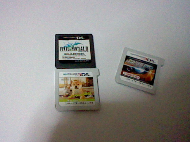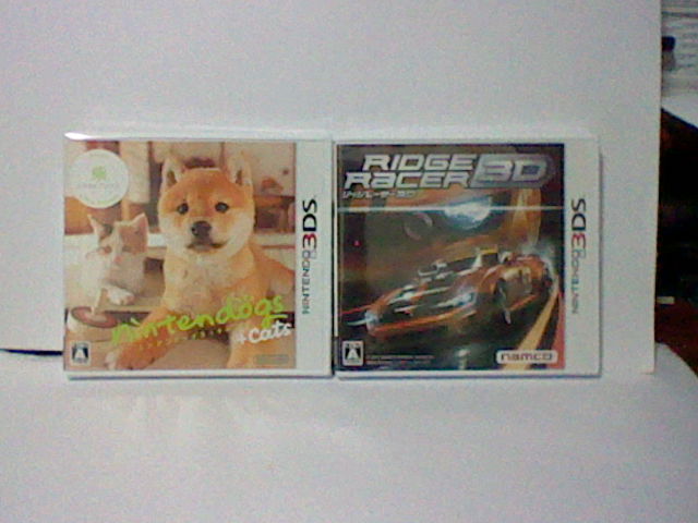 久しぶりに 買い物しちゃいました。 まずはこれ。「防水ふにゃふにゃキーボード」です。 これが意外と安くて 980円でした。 キーには日本語でも書かれてるのに、箱も説明書も すべて英語です。 日本語のラベルが 左上に貼ってあるだけ。 前に買ったものが あまりにもゴムくさいうえに 反応も悪かったので 少々不安でしたが、 まぁ、安いので思い切って買ってみました。 で、使い心地ですが、感度は なかなかよく、実用に耐えうるほどです。 現在も このブログを これで書いているところです。 従来のキーボードに比べて使い勝手はいいとは言えないものの、場所を取らないので、 サブとなった 前のPCでの ちょっと使いには ちょうどいいです。 もうひとつは 前のPCのメモリを強化しようと思い、メモリを買いました。 合計4GBで 価格は 3580円。 ところが、対応してるかどうかも考えずに買ったものですから、 物理的にも 合いませんでしたの。 でもまぁ予備として置いておくのもいいし、知人に ゆずってもいいかなとも考えております。 さて、ゲームソフトも2本買ってきました。中古ですが。 「有野の挑戦状」は、「2」が面白かったし、まったく別のゲームが収録されているから。 「サガ2秘宝伝説」は、リメイク元が個人的にも名作だったし、評判も よさそうなので。 だけど、リメイクに伴って「サ・ガ」じゃなくなったのですが。 これも にんげんの サガか。 予約が遅れて 3月上旬に入荷予定だったニンテンドー3DSが 2月28日に手に入りました!! どうやら 予約していた人がキャンセルしたらしく、 こちらに駒がまわってきたわけですな。 おそらく その人は掛け持ちで予約してたとか? ともかく、ガッシリとしたデザインは、頑丈さと機能美を備えていますな。 コスモブラックにした理由は、好みの色がなかったため、 それなら 黒一色のデザインのほうがいいかなと思ったから。 後でカバー等で装飾するという方法も ありますからね。 付属品はこれ。充電スタンドとACアダプタと、 本体の中に あらかじめ伸縮式のタッチペンと2GBのSDカードが。 SDカードは日立製。書き込みクラスは無記入ですが。 充電スタンドは便利だけども、カバー系統を装着すると 使用できないという難点が・・・ しかし、カバーを使わなくとも、本体の外装自体も キズがつきにくそうなので、 そのまま使うのもいいかも。 最初は カバーと画面保護フィルタを購入。 画面フィルタは やはりライセンス商品がいいので、モリゲームズのを選択。 DSiLLの頃から かなり酷使していますが、意外とキズがつきにくいです。 カバーはキーズファクトリー製。 後に 好みの色のカバーが見つかったので、それを購入。今つけています。 そして タッチペンも購入してみました。 両方ともキーズファクトリー製ですね。 買ったソフトは この2本。 まずは任天堂のソフトをと思い、「ニンテンドッグス&キャッツ」。 そして 奥行きのある3Dを楽しめるジャンルが レースゲームだと思い 買ったのが「リッジレーサー3D」。 パッケージも低コスト化か? 肉抜きされてます。 そして それを利用するがごとく、うまく子犬や子猫たちが・・・ ゲームカードのほうは 従来のDSと同サイズ。 右上の突起は 3DSの切り替えスイッチのようなものを押す役割などはなく、 単純に 前DSに物理的に入らなくしてあるだけのもよう。 さて、ソフトのほうですが、まず「リッジレーサー3D」。 じつは このシリーズ やったのは初めてです。 ちなみにワタクシ 運転免許だって持ってません。 しかし、それでも楽しめます! 爽快感バツグン! 操作はカンタンで、アクセルボタンひとつだけ覚えていればいいという程度。 後々、ドリフトやニトロ等の操作を やってるうちに覚えていくはず。 「ニンテンドッグス」も じつは初めて。 今回はネコも飼えるようになると言うことで 始めてみました。 柴犬のコタロー君です。 名付けた後に 店頭のデモ画面でも同じ名前だったのにはビックリ。 しぐさが とても自然で可愛らしく、 犬好きでない人でも好きになれそうなぐらい。 音声認識で名前を呼ぶこともでき、その感度は すごく良好。 多少発音を変えても しっかりと認識されています。 世話は しなければ病気になるとかはなく、放っておいても問題はなく、 プレイ中に 機会を見て 水やエサをあげればいいという程度。 本体内蔵の歩数計を使ったお散歩システムも いいですね。 さて、今度は 本体にはじめから入っている「ARゲームズ」。 こんなカードが付属していて・・・ カードから キャラクターが飛び出してきたりします。 これは トゥーンリンクのカードですね。 ポーズは いくつかあって、変更も可能。 ファミ通から発売された「ゼルダボックス」のフィギュアと並べてみた。 ほかのカードも使って オールスター競演! 本来は 小さいはずのピクミンを巨大化させてみる。 それに対抗して サムスが赤ピクミンに銃撃しているようにも見えなくもない。 このカード、特殊な塗料で