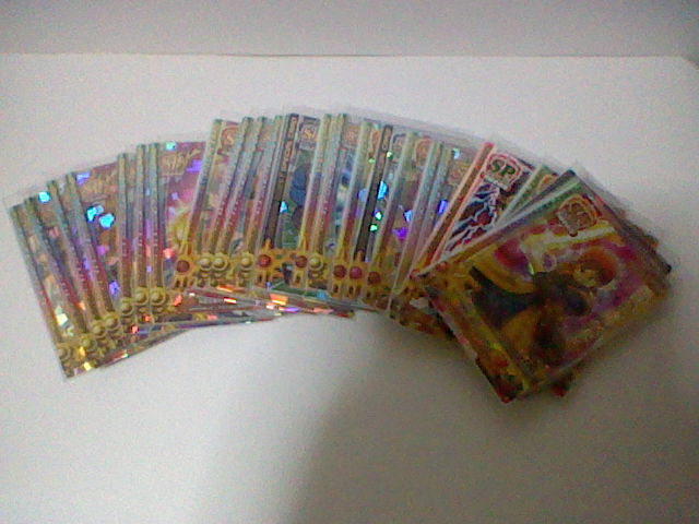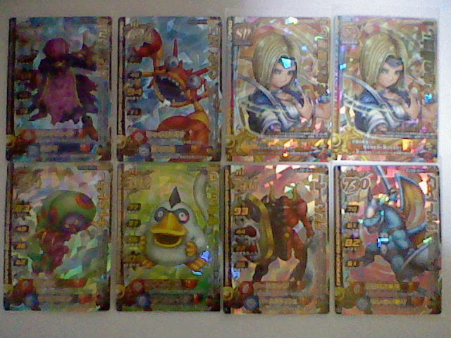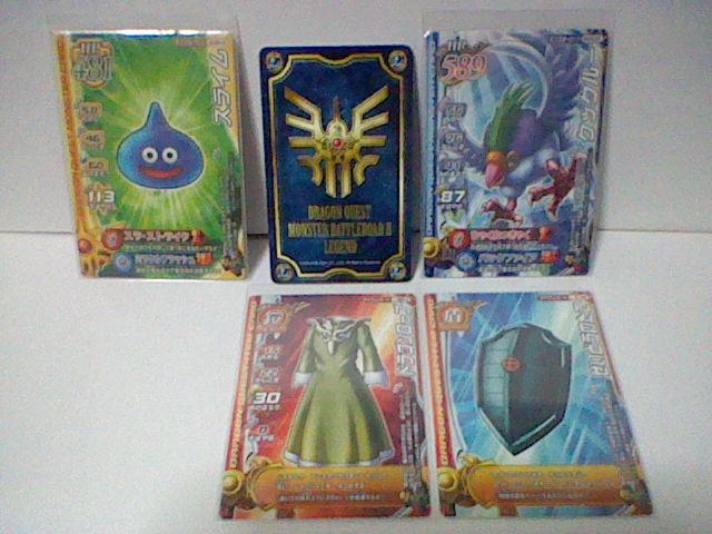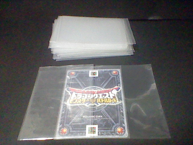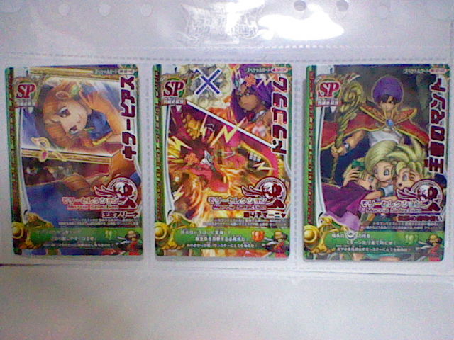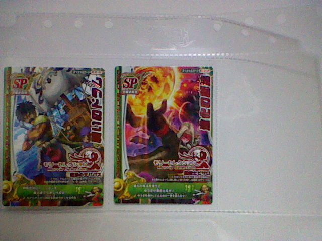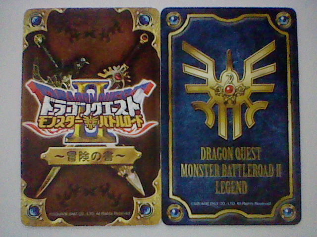 ついこの前、とうとう 1つ目の冒険の書も使い切りました。 現在は2つ目、写真右側のを使っております。 キャラクターが描かれているのより、紋章が描かれているほうが好きだったので、 これに しました。 それにしても、前の冒険の書もボロボロです。 キズだらけだったり、ビミョーに曲がっていたり・・・ ときには お店に忘れて運よく預かってもらってた って事もありましたねぇ。 ここまで本当に よく戦ってくれたものです。ご苦労様。 さようなら、1冊目。よろしく、2冊目。 で、バトルマスター用の モンスターも決まりました。 スライムとクックルー。 バトルマスターと 相性もよく、ミニチームとも条件が一致します。 好きだった スライムナイトとキラーパンサーとも別れることには なったものの、 この2匹、思ってたより使いやすい! とくにクックルーの「ひゃくれつきゃく」は 会心の一撃がよく出る。 スライムの ミラクルフラッシュも 役に立つ。 今回 ウェポンダブルスキャンの実験も兼ねて遊んだので、 まだ決まってはいません。それまでは適当に きせきのつるぎと、まじゅうのツメをミックスしてました。 しかし、斬魔刀、メタルウィング、メガトンハンマーを試したところ、 いずれも使いやすいです。 斬魔刀は どちらも1体に攻撃だけど、闇と光の属性攻撃を使い分けられて、 ビッグバンも かっこいいです。 メタルウィングは メタルバードの飛び方は きせきのつるぎと同じ。 ブーメランと言うより 剣に近い使い心地。普通に扱いやすい。 メガトンハンマーは 少しミスしやすいけど、威力はバツグン! 全体攻撃のデビルクラッシュで1体に与えるダメージが 130程度。 ミスしやすくても、当たれば それ以上に爽快で、 デビルクラッシュなら 1体は外しても十分ですからね。 で、メガトンハンマー使用中に ダーマの神殿エキシビジョンマッチになって、 ライアン様が挑んできましたよ。 試験的に使ってる この武器で 勝てるのかと不安いっぱい緊張いっぱいでしたが、 それでも 勝ちましたよ! しかも今回は とどめの一撃頼りではなく、純粋に力で倒しました! 本腰上げていたわけでもない とはいえ、精一杯の力が出せて よかったです。 もうひとつ驚いたのが 5歳くらいの女の子が なかなかの好プレーを見せていたところ。 戦士・オーシャンクロー・リリパットで 相性まで作っていたし、 多少のムラはあれど、しっかり ゆうきを稼いでいたし、 つばぜりあいまで しっかりこなしていたし、なかなかの達人だった。 惜しくも オルゴ・デミーラ第2形態で敗れたが、 ルールも しっかり理解していた 見ごたえのあるバトルだった。 小さい子でも ここまでやる子も いるものだと本当に驚いたものです。 さて、同じ建物に ダイソーもあったので、スリーブも購入。 写真右側です。3パックも買いました。そこまでカード買うつもりかよ! 左にあるのは ジャストサイズのスリーブ。200円程度。 このカードに 本当にピッタリのサイズで、 これを上から かぶせたあとで、さらに ダイソーで売っているスリーブを かぶせて使っています。 さすがに全部を これで保護するのは無理なので、もちろん 実戦で使うもののみ。 ちなみに 排出されたカードは、排出された時点で スリーブに入れて保護しています。 ついでにもう、今まで使っていた スペシャルカードの外スリーブも交換しちゃいました。 いわゆる衣替えですね。歴戦の戦士たちも衣替えというわけです。 人間の衣替えは まだ早すぎますが・・・ よくばりな性分で、どうも 全部持ち歩いちゃうんですよねぇ。 カードの選択肢は増えますが、探すのに 一苦労しちゃったりします。 とくに 手垢で くっついてたりなんてことも ありますね。 そんなとき、スリーブをしていて 汚れずに済んでよかったとも思います。 スリーブの守備力は最強です。 古い外スリーブ。もう キズだらけで 数枚重ねただけで 向こうが見えません。 手前にあるのは 左が古いほう、右が未使用。 透明度が明らかですね。 ダイソーだけでなく、本屋もあったので、攻略本も買いました。 写真には 撮っていませんが・・・ しかし、Vジャンプの付録といい、最近付録にゾンビ系多くない? 間違って 銃で撃っちゃいそうですよ。 後で調べて気づいたけど、バトルマスターチームには スライムナイトも相性がいいみたい。 スライムもいいけど、考え直してみようかな・・・ そんでもって 今日は このカードを手に入れました。 後ろに子供も見ていたので、ちょっと罪悪感があったかも・・・ これは 上下を使い分けるタイプなので、外スリーブの口の部分を ピッタリに切っておきました。 これで上下どちらでも 使うことができますね。 これ1枚で ドラゴン斬りとロトの紋章の両方が使えちゃうんですね。 まさにお買い得パックですね。運もからんでくるお買い得パックですが。 これ狙いで カード買いまくって破産しちゃったら、全然お買い得じゃないですね。 冗談は さておき、す