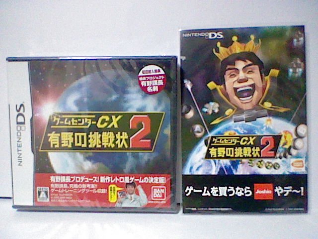 サボりすぎて あけましておめでとうで なくなっちゃいましたね。 さて、去年12月末には・・・ 「ゼルダの伝説 大地の汽笛」で遊んでいました。 予約して買ったので、ルピーケース入り羽根ペン型タッチペンもゲット! 透明です。なんか使うの もったいないな~~。 持った感じは 決して悪くないです。 透明だし 視界をさえぎることなくプレイできそうです。 しかし、もったいないので やっぱり使いたくない・・・ こんな感じのタッチペン、売り出さないかなぁ・・・ パッケージには「ミンナニハ ナイショダヨ」と、 ハイリア文字で書かれていました。なつかしい響きですね。 昔は 10ルピーとか100ルピーとか 恵んでもらったものです。 でも、そのときは「ミンナニ ナイショダヨ」でしたが・・・ ゲームのほうはと言うと・・・ 汽車を動かすのが楽しい! リンクとゼルダが かわいい! 2人で力を合わせる謎解きが面白い! とくに ゼルダの行動には注目。 今までのシリーズにはないようなキャラに・・・ 汽車は単なる移動手段ではなく、 ときに乗客を乗せたり、貨物を運んだりする事もあり、 乗客の場合は 標識に従って汽笛を鳴らしたり スピードを落としたりなど、 車掌らしい行動も問われ、 貨物を運ぶ場合は、敵から攻撃を受ける前に 貨物を守る必要があり、 また、荷物によっては 時間で痛んでくるものもあったりするので、 目的地までのルートを考えたりする必要もあったりと、 とにかく 鉄道の概念が うまく活かされていて面白い。 ただ、やはりこのシリーズ、回を重ねるごとに 深みが出ているのだが、 反面 自由度が減ってきているのではないかとも・・・ 昔は レベルに逆らって ダンジョンを攻略していくのも楽しみであったが、 今では レベル通りに進まなければならないのが 残念な部分かなと。 ボス戦でも 練りこまれている反面、 このダンジョンで手に入れたアイテムを使うのは確実など、 攻略法は決まっているので、 ボス戦自体も 謎解きに感じることも・・・ さて、去年最後に買ったゲームは、これ。 「ゲームセンターCX 有野の挑戦状2」。 本当は Wii「みんなのニンテンドーチャンネル」の 「ゲームセンターCX 番外編」のマリオ3編の最後で 有野課長たちが「NewスーパーマリオWii」を楽しそうに遊んでいたので、 それを買おうかと思ったら 売り切れてたので これを買っちゃいました。 ジョーシン特典のハガキまで付いていました。 そして、有野課長の名刺付きでした。 これ 一応ゲーム中にも登場します。テキストだけですが・・・ ゲーム内容はというと、レトロ風のゲームが数本収録されていて、 1つ1つが丁寧に作られていて 面白い。 個人的に どれもハズレなし! 全てのゲームを楽しめた。 シューティングゲーム3本は 純粋にスコアアタックがアツく、 武器の切り替えや使い分けが面白い。 「トリオトス」は、今まで遊んだ落ち物パズルゲームの中で 個人的に 1・2を争うパズルゲームと言ってもいいほどハマる。 「課長は名探偵」は ギャグ要素は強いものの、案外本格的なアドベンチャー。 そして、ネタの宝庫。特典の名刺も ここで使われたもの。 「デーモンリターンズ」は、王道の横スクロールアクションで、 まさに その当時の王道という感じで楽しい。 「無敵拳カンフー」は、パンチとキックを使い分けたり、 敵を他の敵にぶつけたり、操作は単純なのに 本当に格闘しているような動きが楽しめる。 難易度は高いけど、コンティニューの裏技を ゲーム中に知ることも出来るみたい。 どれも 基本が練りこまれていて、気軽に楽しめてハマれる。 レトロ風に作られてはいるけど、本当に誰でも楽しめるつくり。 個人的に こんなゲームが欲しかったと本気で思った。 それらのゲームを、「ありの少年」と一緒に遊びながら攻略していくというストーリー。 ゲーム機の進化を追っていく形になるけど、 本当にその当時 子供の頃に言いそうなネタも ふんだんに盛り込まれているので、 収録されているゲームを遊ぶ以外にも 楽しめる要素がタップリ。 残念だと思うのは、ゲーム中の ありの少年(CP)としか 対戦や協力プレイが できないこと。 どれも丁寧に作りこまれていて、実際の対人戦が行えないのは じつにもったいない。 もちろん、本編である「ゲームセンターCX」も、 Wiiの「みんなのニンテンドーチャンネル」で観たり、 レンタル屋で借りて観たりも してます。有野課長の発言が面白いです。 有野氏の言い方は 嫌味がなく面白い例え方をするから、楽しく見守っていられます。 でも、マリオ3で600機も失うかなぁ。 マリオ2がクリアできて マリオ3で一度断念するというのは、どうなんだろう・・・ しかし、なぜか観てしまうんですよね。
