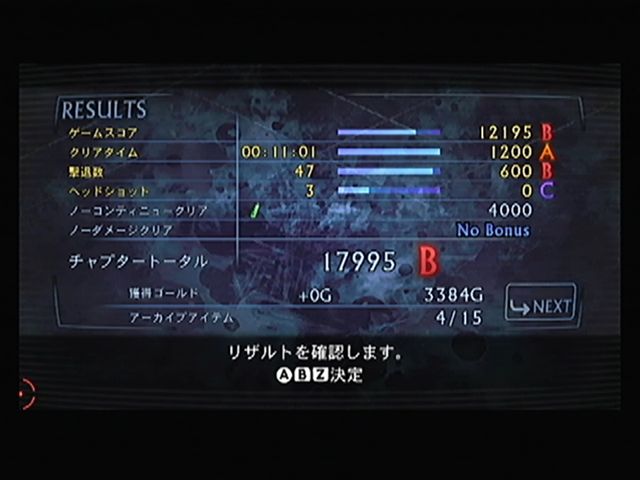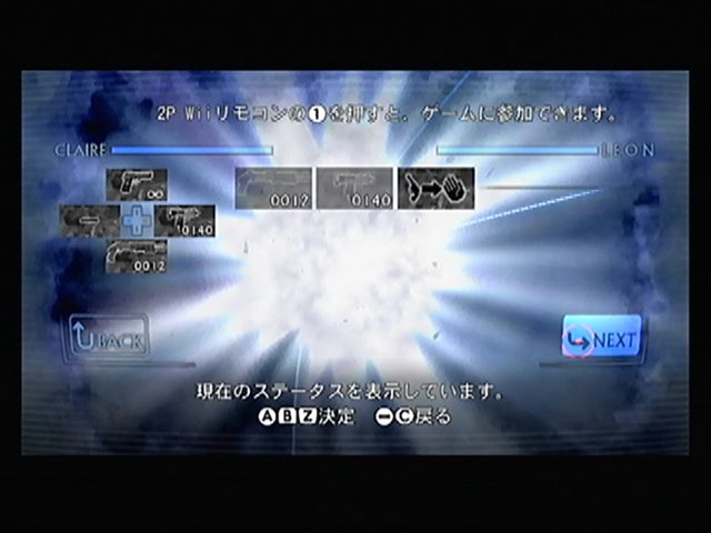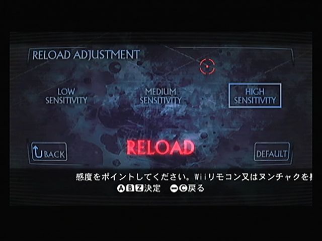 停滞中だった 前作 アンブレラ・クロニクルズを改めてやってみたら面白く、 みんなのニンテンドーチャンネルで 鈴木史郎さんがプレイしているのを観て、 面白そうだと思ったので 思い切って購入。 ゲームプレイよりも 説明書よりも、 まず真っ先にオプションを選ぶタチなんです。 シンプルなルールの ガンシューティングながらに、設定できる項目は意外と多い。 難易度設定。 とりあえずヘタレなんで イージーにさせてもらいます。 バイオ4のときも ノーマルで一度挫折しちゃったことも あったかなぁ・・・ ポインタの高さ設定。 「ゼルダの伝説 トワイライトプリンセス」にも これと同じような設定があったっけ。 リモコンを低い位置で扱っても安心ですな。 右にあるのは ポインタの感度。数値を上げるほど キビキビ動いてくれます。 でも、ほどほどの数値に。 リロードは Wiiリモコンを振ることで行う。 このモードでは、リモコンとヌンチャクのモーションセンサーの感度調整。 「HIGH SENSITIVITY」にすると、 軽い振りでも反応するように。 下の「RELOAD」はテスト用。振ると文字が光ります。 自分は HIGHに設定して、リモコンを軽くたたくようにリロードしています。 むやみに振るよりも 照準が大きく動かないし、リロード後の狙いも やりやすいです。 ステージとキャラクター選択が かっこいいね。 選ぶと ガラスがパリーンと割れて、その破片が 次の選択メニューになったり・・・ 戻ったときには 割れたガラスが復元されるのも面白いです。 ━━━━━注意━━━━━ ここから先 刺激的な画像が表示されますので、ご注意ください。 クラウザーさんと村を探索・・・ 雰囲気は バイオ5で見た村と似ていますが・・・別の場所ですよね。 バイオ5も Wiiで出ないかなぁ・・・ いきなりゾンビさんのお出迎えです。 最初のゾンビを 軽くぶったおしました。 前作とはちがい、リロード時にマガジンを装填する手が出てくるようになりました。 ふとN64の007ゴールデン・アイと、パーフェクトダークの変化を思い出しました。 家捜し家捜し~~っと。 今回は お金のシステムが導入されました。 このお金で 武器の改造も行えるんです。 壊せる小物も けっこう多く、それを銃で撃って壊していってもお金が手に入ります。 もちろん 前作同様アイテムやアンブレラマーク(レポート等)も出てきます。 ショットガンを手に入れたぜ。 威力が高く、敵も吹っ飛ばせるので重宝する武器なのですが、 撃った後のスキも多く、リロードが長いんですよね。 なので 確実に敵を狙いたいところ。 撃った数だけリロードされるので、リロードのタイミングが重要になってきます。 とりあえず、最初のチャプターをクリア。ランクはBですよ、B。 ヘッドショットが足りないようですよ。 ヘッドショットは ゾンビだけにあり、 ハンドガンで頭部を撃ったときに発生するクリティカル。 しかし今回、そのポイントが 頭部の上側。 つまり、脳の位置を狙うつもりでなければ 発生しないんです。 とはいえ、コツを覚えれば 案外狙えるもの。当たれば爽快です。 さて、武器の改造ですが、今回はバイオ4のように細分化されています。 自分は主に ハンドガンの改造を重視していました。 もちろん他の武器も改造可能ですが、 今回のハンドガンは 安定して扱いやすくなっています。 とくに連射速度を改造すれば、それはもう パンパン撃ちまくりです。 弾数も無限だし、主力武器になります。 ヒマさえあれば、オブジェ壊しに パンパン撃ちまくってますからねぇ。 平凡な武器ですが、やればできる子なんです。 武器は十字ボタン(ヌンチャクのスティック)に登録可能。 一度に4つまでしか登録できないけど、パッと切り替えられるのが うれしいですね。 メニューを出せば、ゲーム中にも変更可能。 この4つだけで ステージクリアしなければならない ということではないので安心ですね。 次のステージは、レオンの回想という展開で「バイオハザード2」の話に。 今回は 1人プレイで選択しなかったキャラクターが パートナーとして援護射撃をしたり、ときにゾンビに からまれたりすることもあります。 なので、画面にパートナーが出てくることもあるのですが、 パートナーを撃ってもダメージにはなりません。 なので、気兼ねなく 撃つことができますね。 だからと言って・・・ パートナーを撃ちまくったりも しています。 ひどすぎますね・・・ごめんね。 レオンさーん、狙われてますよー。 撃っても弾はすり抜けるので、貫通マジックでゾンビに当たるなんてことも。 パートナーが からまれたら、ショットガンで助けるなんてのもアリですね。 じつは このソフト、コレクターズ・パッケージの方を買いました。 ダークサイド・シンフォニーというCDと、 特典映像などが収録されたDVDが封入。 CDは ボス戦等で流れるBGMが収録されていて、 恐怖感と緊迫感のある 壮大なオーケストラがスゴイです。 メロディもよく、とても印象に残る曲